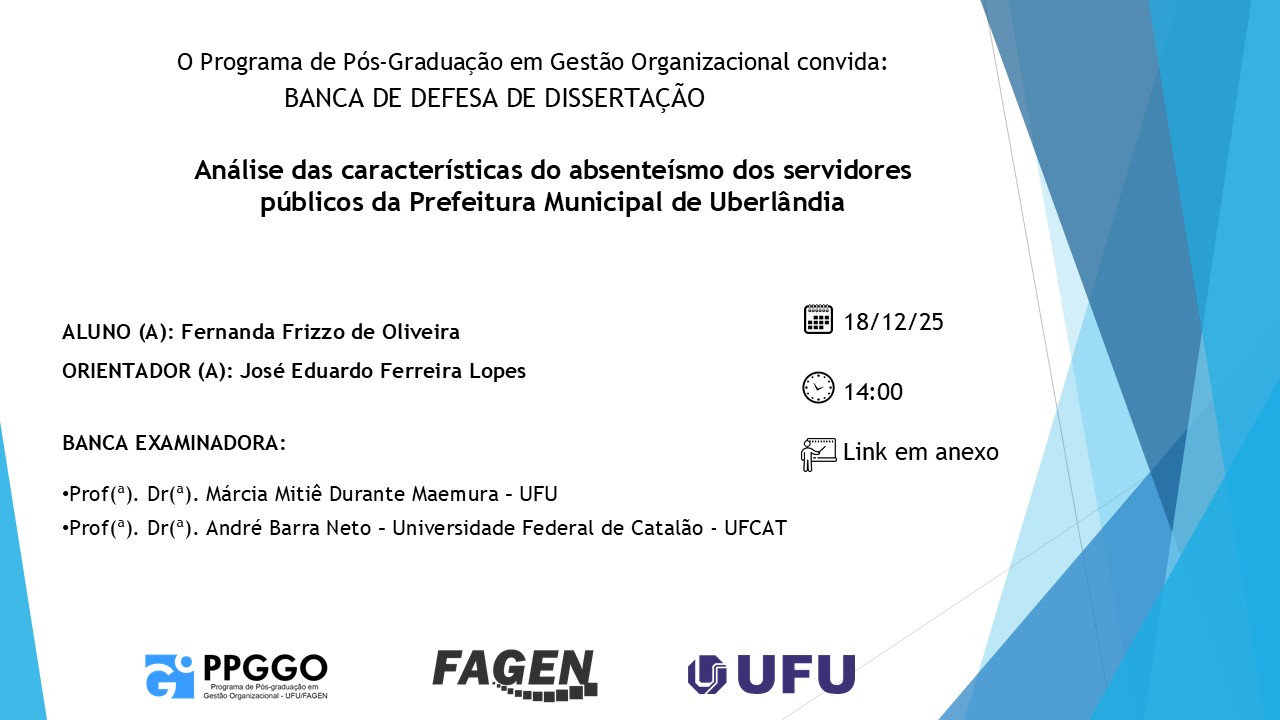 Convite PPGGO: Análise das características do absenteísmo dos servidores públicos da Prefeitura Municipal de Uberlândia