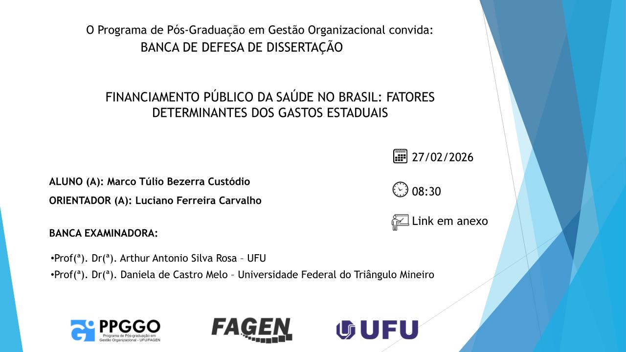 Convite PPGGO: FINANCIAMENTO PÚBLICO DA SAÚDE NO BRASIL: FATORES DETERMINANTES DOS GASTOS ESTADUAIS