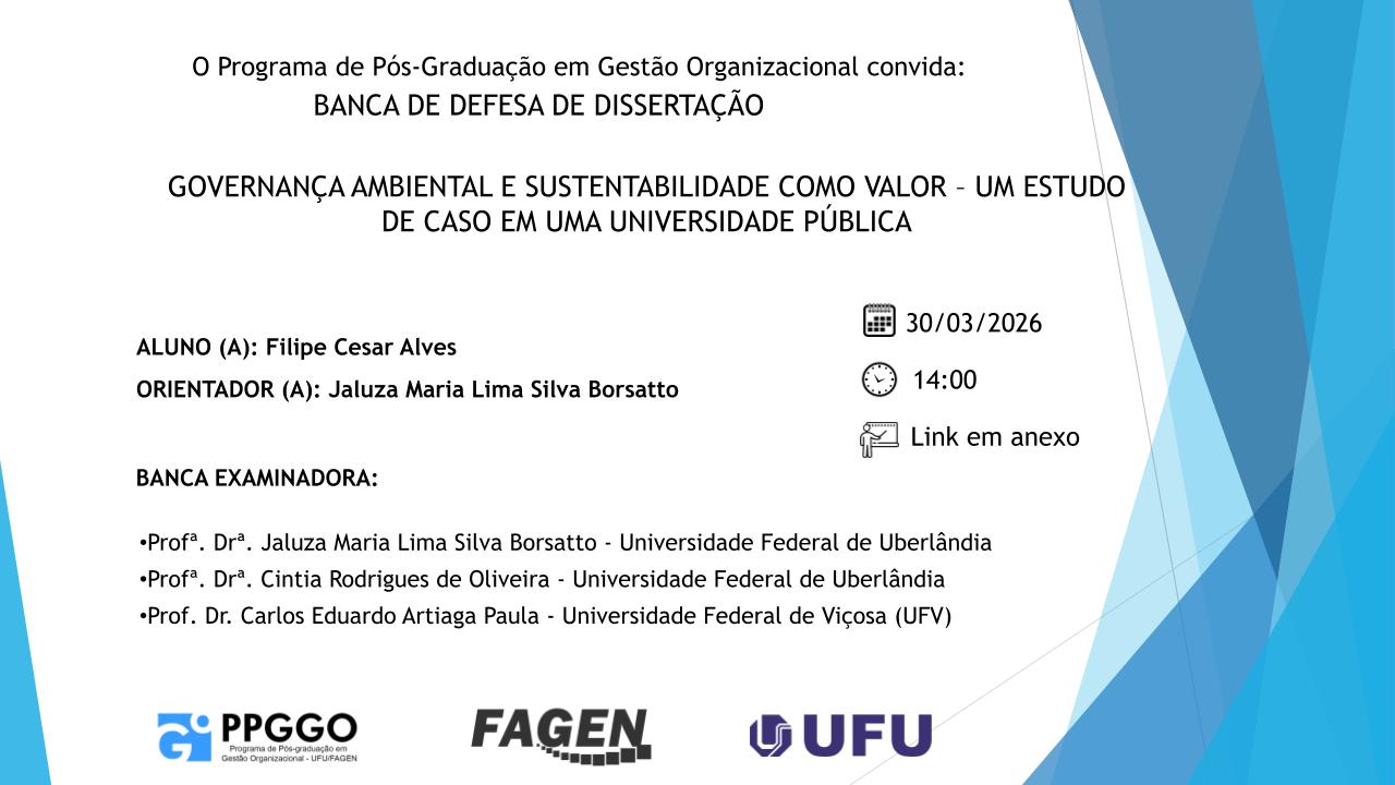 Convite PPGGO: GOVERNANÇA AMBIENTAL E SUSTENTABILIDADE COMO VALOR – UM ESTUDO DE CASO EM UMA UNIVERSIDADE PÚBLICA