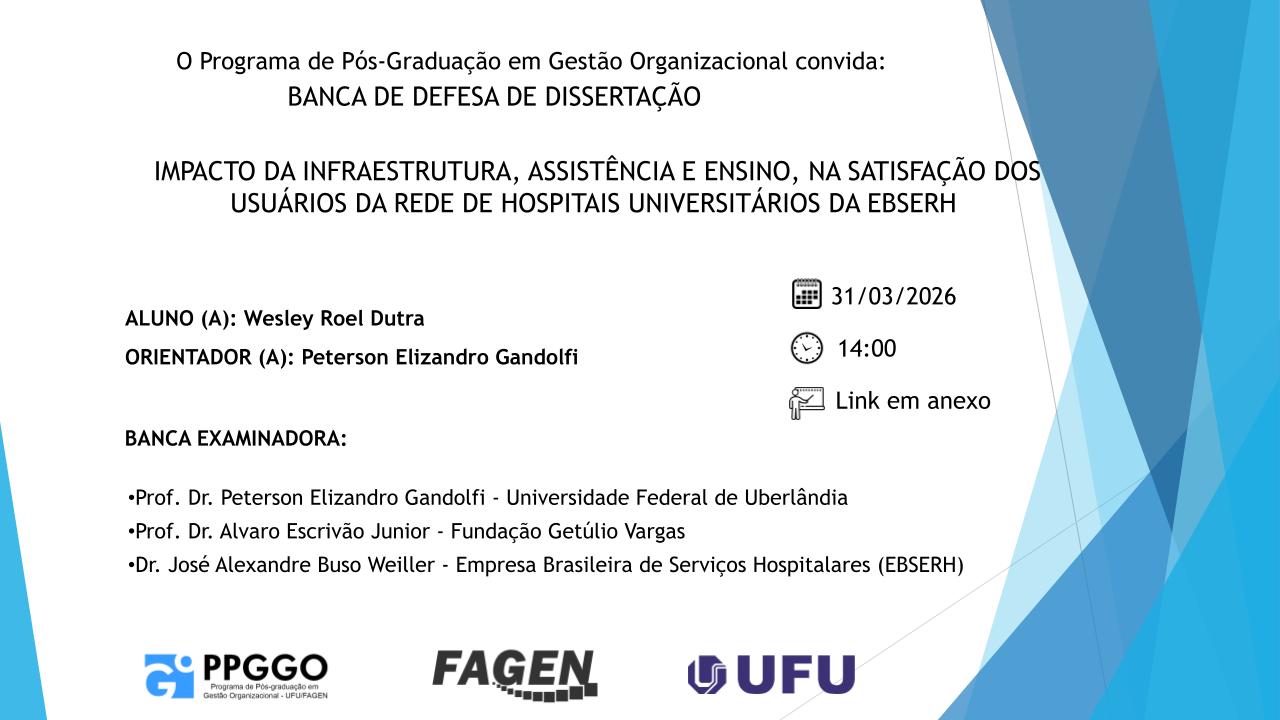 Convite PPGGO: IMPACTO DA INFRAESTRUTURA, ASSISTÊNCIA E ENSINO, NA SATISFAÇÃO DOS USUÁRIOS DA REDE DE HOSPITAIS UNIVERSITÁRIOS DA EBSERH